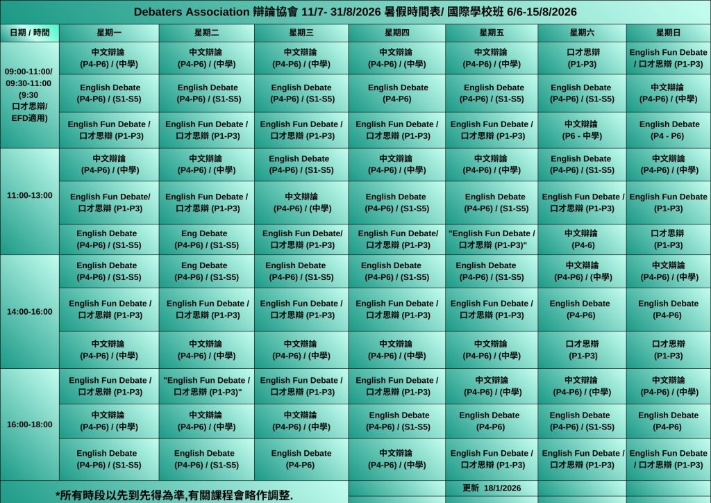 📅 暑期班日期 🗓 11/7 – 31/8 | 6/6 – 15/8 國際學校學生